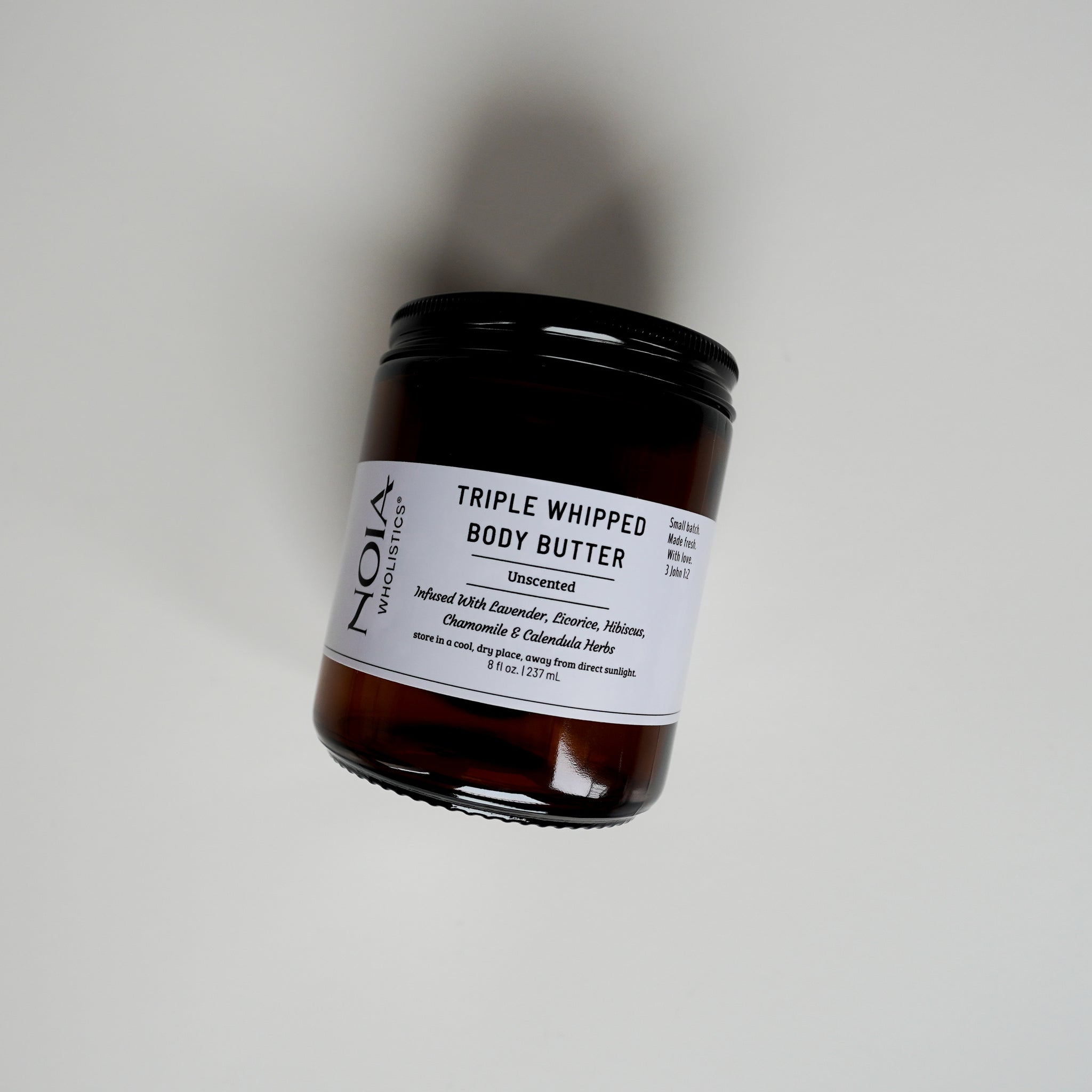 The Triple Whipped Body Butter - Unscented - rich and creamy, melting to the touch, this triple whipped body butter will leave your skin feeling soft and supple. The Lavender, Hibiscus, Licorice, Chamomile, and Calendula herbs are infused to extract their healing properties for the skin, leaving your skin with a radiant glow. This body butter is now triple whipped with Shea, Mango, and Kokum butters for the ultimate rich, creamy texture and benefits. Previously whipped with shea butter.
